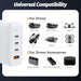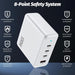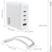 【100W Power Adapter】Support 100w fast charging, input 100-240V, 0.8Amp, 50/60Hz; 4 ports output, USB-C1/C2 output 5V/3Amp, 9V/3Amp, 12V/3Amp, 15V/3Amp, 20V/5Amp; Usb-C3 output 5V/3Amp, 9V/3Amp, 12V/2.5Amp. Amp, 12V/2.5Amp, 15V/2Amp, 20V/1.5Amp; Usb-A port output 5V/3Amp, 9V/3Amp, 12V/2.5Amp, 20V/1.5Amp
